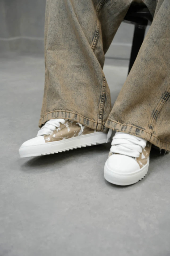 Wykonana z wyjątkową dbałością o detale, ręcznie barwiona, niestandardowa cholewka z płótna sprawia, że każda para jest unikalnym dziełem sztuki — nie powstaną nigdy dwa identyczne egzemplarze. Uzupełnieniem tej charakterystycznej cechy jest niezawodny, młotkowany biały nosek ze skóry, który dodaje projektowi odrobinę elegancji. Wnętrze buta wyposażone jest w miękkie wyściełanie wokół kołnierza, które zwiększa komfort noszenia. Ostatnie detale obejmują logo Numeriś na pięcie, oraz slogan definiujący styl: „Design to myśl uczyniona widzialną.”