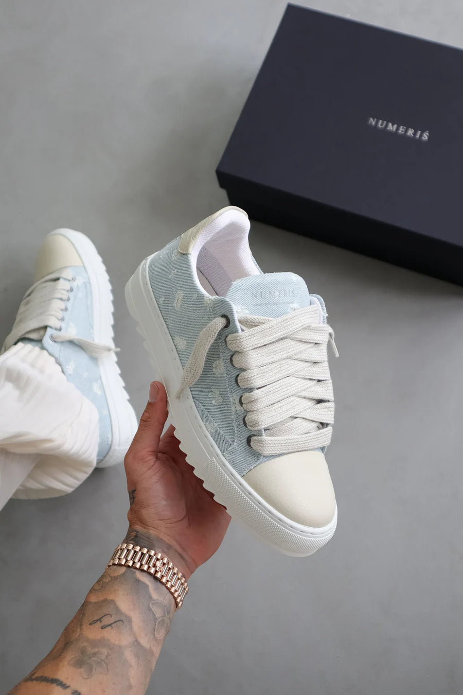 Wykonana z wyjątkową dbałością o detale, ręcznie barwiona, niestandardowa cholewka z płótna sprawia, że każda para jest unikalnym dziełem sztuki — nie powstaną nigdy dwa identyczne egzemplarze. Uzupełnieniem tej charakterystycznej cechy jest niezawodny, młotkowany biały nosek ze skóry, który dodaje projektowi odrobinę elegancji. Wnętrze buta wyposażone jest w miękkie wyściełanie wokół kołnierza, które zwiększa komfort noszenia. Ostatnie detale obejmują logo Numeriś na pięcie, oraz slogan definiujący styl: „Design to myśl uczyniona widzialną.”