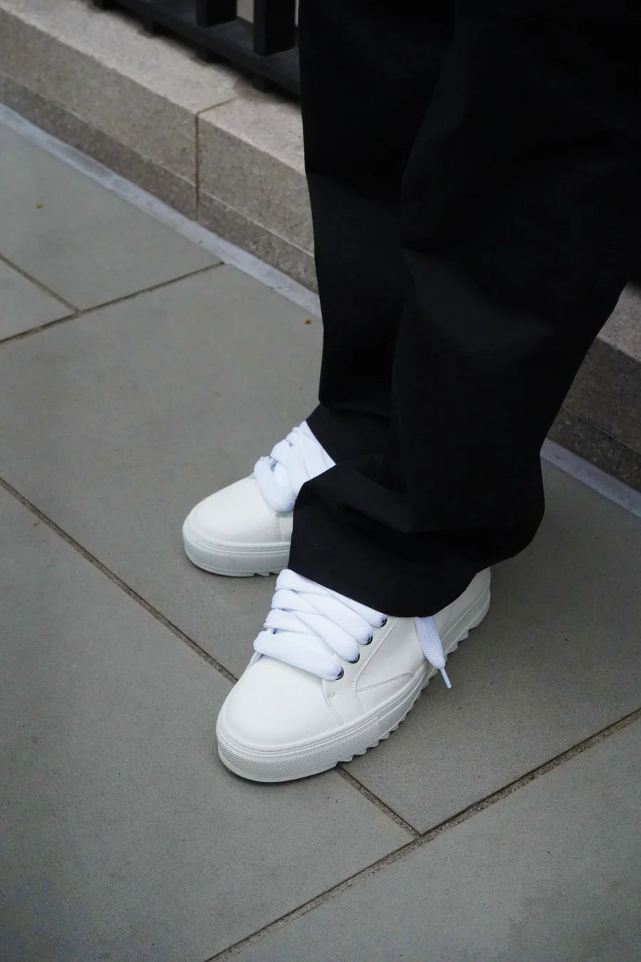 Wykonana z wyjątkową dbałością o detale, ręcznie barwiona, niestandardowa cholewka z płótna sprawia, że każda para jest unikalnym dziełem sztuki — nie powstaną nigdy dwa identyczne egzemplarze. Uzupełnieniem tej charakterystycznej cechy jest niezawodny, młotkowany biały nosek ze skóry, który dodaje projektowi odrobinę elegancji. Wnętrze buta wyposażone jest w miękkie wyściełanie wokół kołnierza, które zwiększa komfort noszenia. Ostatnie detale obejmują logo Numeriś na pięcie, oraz slogan definiujący styl: „Design to myśl uczyniona widzialną.”